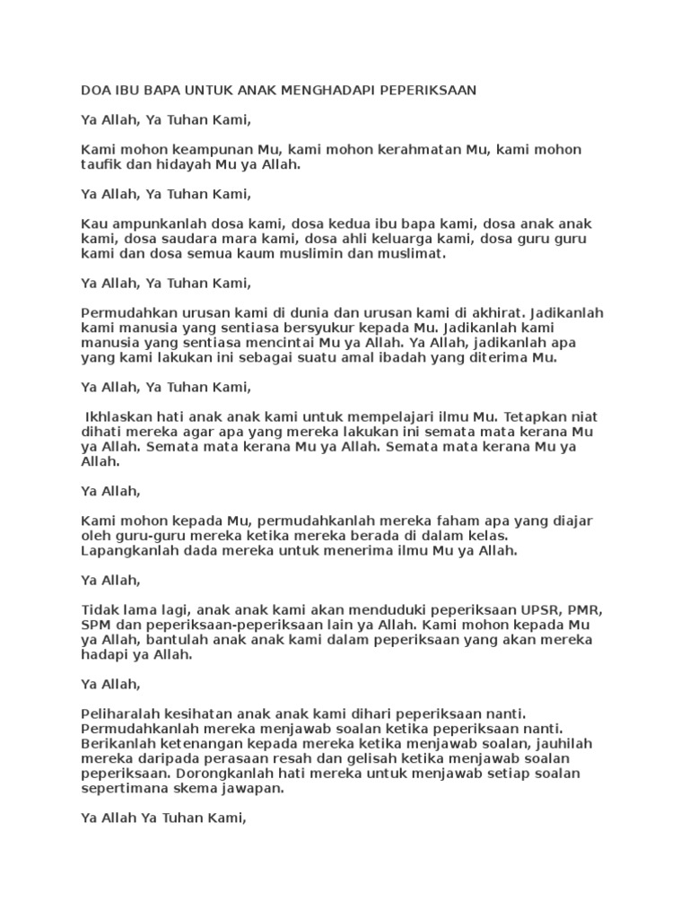 Doa Ibu Bapa Untuk Anak Menghadapi Peperiksaan Pdf